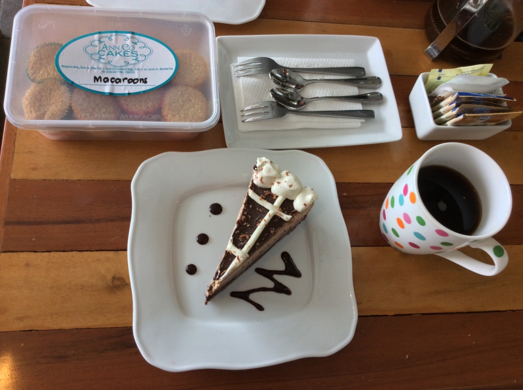 I chose the Toblerone cheesecake, and unable to resist the macaroons too! The cheesecake was to die for. The coffee was also good. Two cups coffee, two heavenly cakes, and the macaroons cost only a little over Php 400!